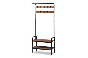 Add rustic style to your entryway with the Aislin hall tree. This versatile piece combines seating and storage into one, making it an ideal option for optimizing your space. A durable black metal frame supports two shelves crafted from distressed wood. Hang coats and scarves on ten hooks or on the top bar. Store shoes…