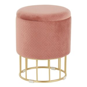 Opulent and confidently contemporary – that’s the Canary Ottoman by LumiSource. Features a captivating cage-like gold-tone metal base and an elegant upholstered top available in various modern colors, a bold touch of fancy for your seating needs. Product Details Glam/contemporary styling Fixed height Stylish velvet upholstery Sleek cage-like gold base Removable lid for storage Dimensions…